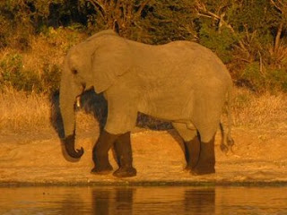 The approach to seeing the game is also different - the morning excursion is a walk, rather than a drive, which leads to the usual nervousness when you hear a buffalo coughing close by; and if the guides hear a lion or an elephant not too far away during the day they'll invite you to hop into the range rover and go and take a look at it. The senior guide, Dave, who is the owner of the camp and an extreme wildlife enthusiast, also took us out at lunchtime to sit at the edge of the local waterhole for a couple of hours and watch whatever was coming and going. At one point we saw a lone elephant which was walking along the side of the lake stop short, clearly startled, - and a tail disappearing into the trees - it was a large male lion which had been lazily sitting in the shade, also watching whatever was coming and going, including us. Dave told us to jump onto the vehicle - not for safety, as I thought at first, but to follow the lion.